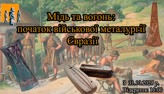 31 жовтня о 15:00 Ззапрошуємо на відкриття мінівиставки: «Мідь та вогонь: початок військової металургії Євразії», що відбудеться на тлі великої виставки «Легенди каменю та сталі: історія холодної зброї».