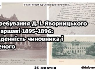 16 жовтня о 14:00 в науковій бібліотеці історичного музею відбудеться онлайн-лекція від Олександра Пестрикова “Перебування Д.І. Яворницького у Варшаві 1895-1896: щоденність чиновника і вченого”.