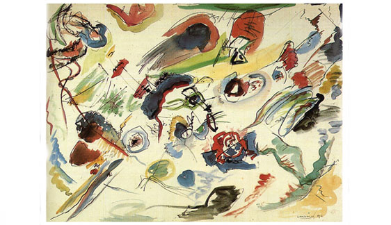 На фото: Василь Кандинський. Перша абстрактна акварель. 1910 р. Центр Жоржа Помпіду, Париж.