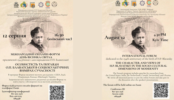 О 16:30 запрошуємо доєднатися до Міжнародного онлайн Форуму, присвяченого 194-річниці з дня народження О.П. Блаватської, нашої співвітчизниці, всесвітньо відомої мислительниці, теософіні, дослідниці стародавньої мудрості.