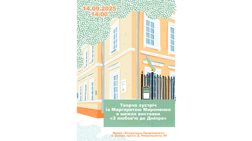 Запрошуємо 14 вересня о 14:00 до музею «Літературне Придніпров’я» на творчу зустріч із художницею Маргаритою Мироненко в межах виставки «З любов’ю до Дніпра».