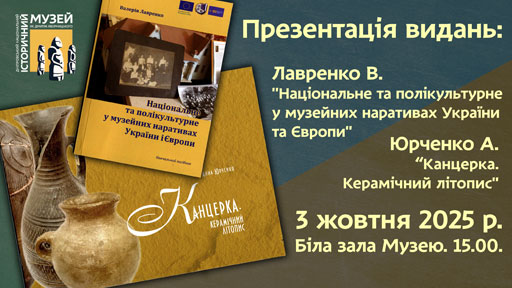 Наукова і популяризаторська робота в музеї триває! 3 жовтня о 15:00 запрошуємо вас до історичного музею на презентацію її результатів у вигляді відразу двох видань!